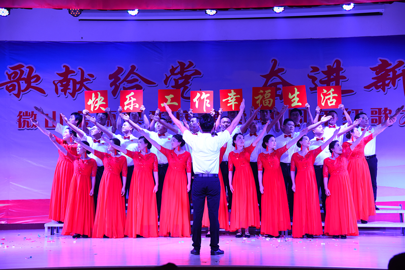 最后,全体人员起立共同演唱《没有共产党就没有新中国》,职工们精神饱满,神采飞扬,熟悉的旋律跳跃耳际,铿锵有力的文字感染着整个现场,他们深情而嘹亮的歌声,唱出了qy球友会官网人的自信、精神和气魄。