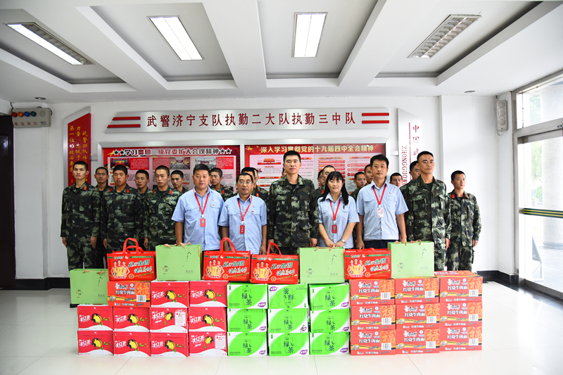 7月31日,qy球友会官网开展“军爱民、民拥军、军民鱼水一家亲”军民共建活动,党委副书记孙长军一行4人到武警济宁支队执勤二大队执勤三中队和微山县消防救援大队慰问奋战在一线的官兵,为他们送去了日常生活用品及防暑用品,并向他们致以亲切的问候和节日的祝福。