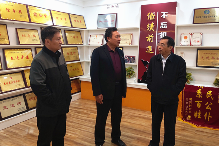 在高楼乡渭河村,孙长军一行参观了渭河村党建文化长廊、村委荣誉室,聆听了孙茂东同志生前先进事迹,深刻学习了孙茂东自2002年担任村党支部书记以来,始终不忘初心、牢记使命,一心一意为村里谋发展、为群众谋利益,使渭河村从一个贫穷落后的小渔村发展成为农村居民人均可支配收入突破2万元,村集体年收入近百万元的富裕村的光辉历程。