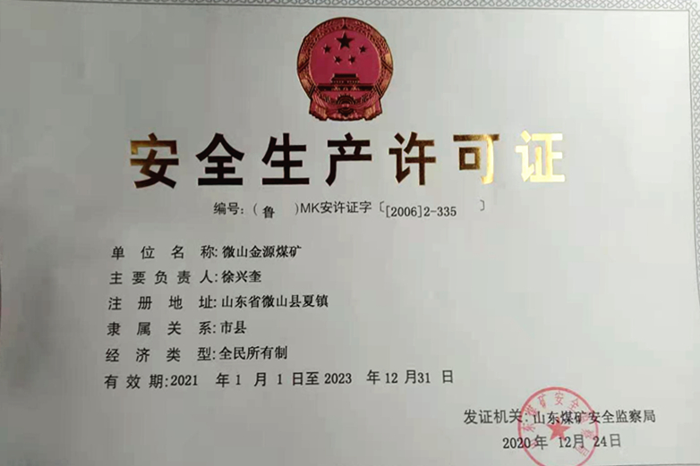 qy球友会官网原《安全生产许可证》于2020年12月31日到期,该矿根据《煤矿企业安全生产许可证实施办法》要求,提前3个月申请了延期办理手续,并由山东煤矿安全监察局进行了现场审核。