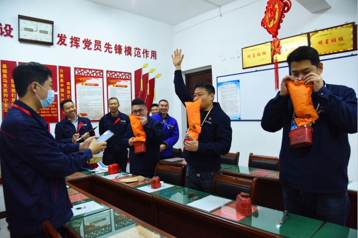 近日,qy球友会官网开展了“自救器技能”培训活动,在早班晨会上,组织职工共同观看了《压缩氧自救器操作使用方法》视频,并现场举办“自救器规范佩戴使用”计时赛,切实提升职工在突发状况下正确快速使用自救器的能力。