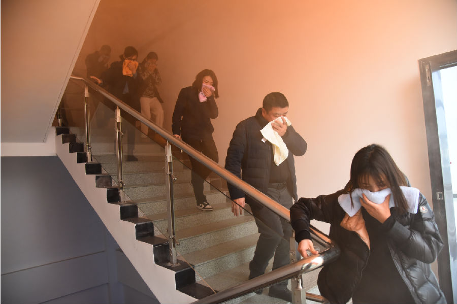 随着一阵应急警报的响起,逃生演练开始了。大家迅速行动,按照预定路线有条不紊地撤离,一丝不苟地执行着应急预案。职工们在组织单位的指挥下,纷纷穿过步行梯,用手扶着扶手,紧跟队伍有序前行。没有人慌乱,也无人掉队,每名演练人员都展现出了出色的应急素质。