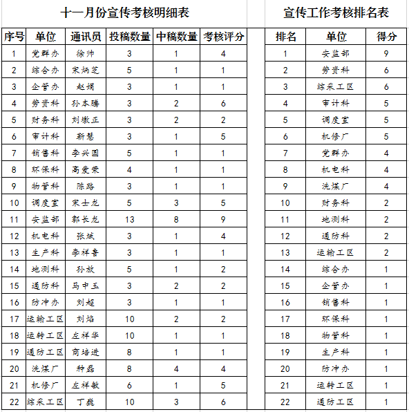 2019年12月份各单位投稿中稿情况公示