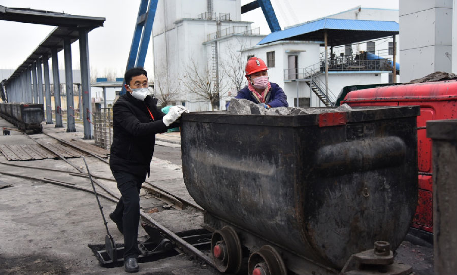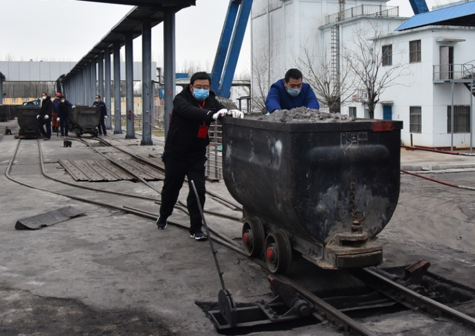 2月5日上午寒风凛冽,机电副矿长刘金伟带领值守部门负责人历经2个多小时,对副井口西车场50多辆矿车矸石进行了清运。