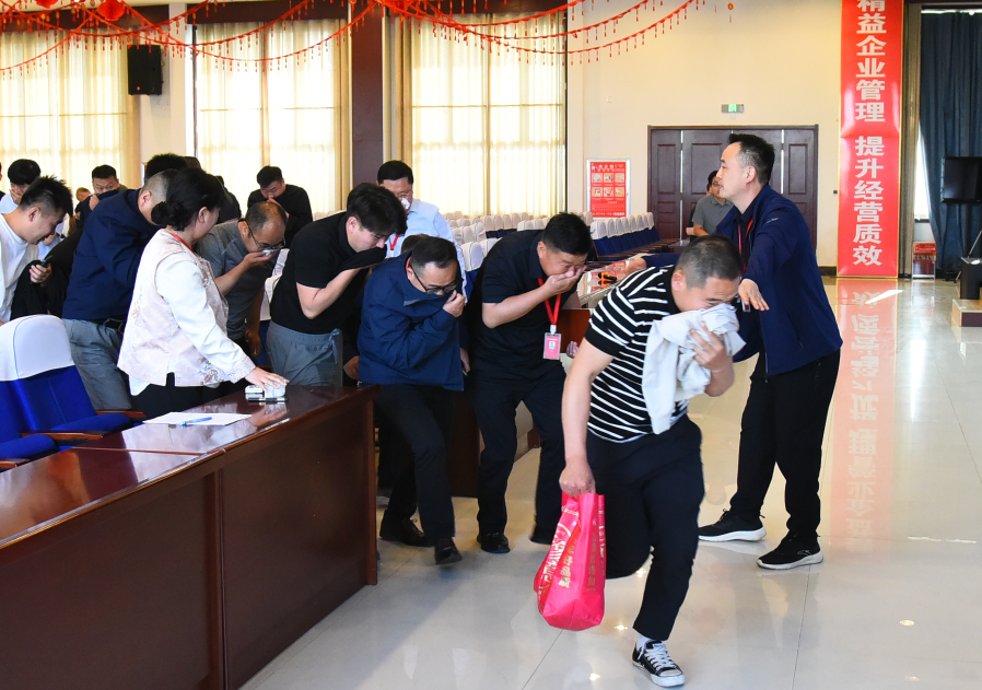 活动最后进行了模拟火场应急疏散演练。随着警报响起,参训职工迅速反应,按照预定逃生路线,用湿毛巾捂住口鼻,采取低姿快速撤离。整个演练过程组织严密、反应迅速,仅用1分15秒就完成全员安全疏散,达到预期目标。